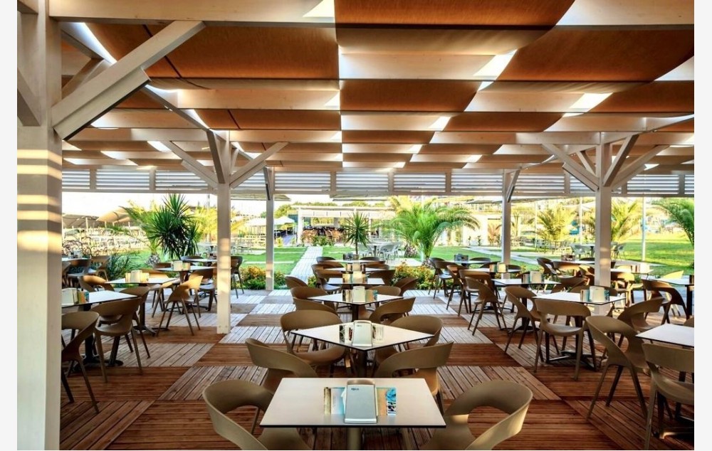 Smeštaj: Hotelski kompleks čine glavna sedmospratna zgrada i pet dvospratnih vila koje imaju ukupno 358 soba. U glavnoj zgradi se nalaze standardne sobe sa pogledom na kopno ili more i porodične sobe, dok se u vilama nalaze vila standardne sobe i vila porodične sobe. Hotel poseduje i sobe za osobe sa posebnim potrebama.