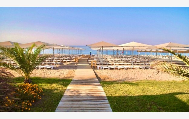 Plaža: Hotel poseduje sopstvenu peščano-šljunkovitu plažu koja se nalazi na 500m udaljenosti od hotela (postoji podzemni tunel). Za goste hotela ležaljke i suncobrani su besplatni, peškiri uz doplatu. Bar na plaži uz doplatu.