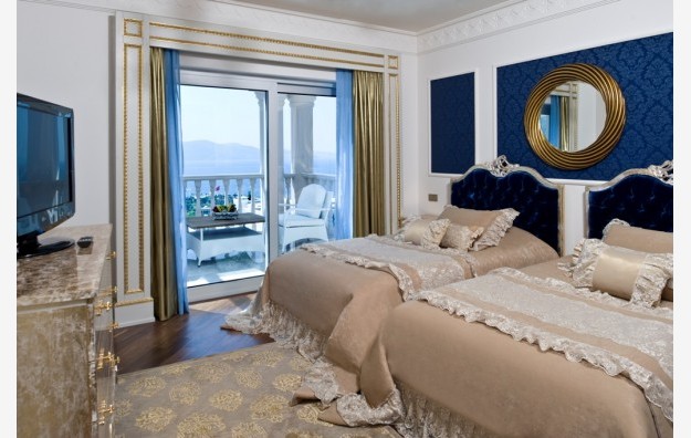 Sobe: Deluxe sobe u glavnoj zgradi ili u bašti sa pogledom na baštu ili na more, veličine oko 42m² sa kupatilom (tuš/wc i fen za sušenje kose), mini-bar (dnevno se dopunjava sa vodom), klima uredjaj, wifi, TV, sef (besplatno korišćenje), ketler, balkon. Maksimalno borave 2 odrasle osobe i 1 dete do 12 godina. Premium sobe veličine oko 52m2 sa pogledom na more, smeštene u bašti i isto su opremljene kao deluxe sobe. Maksimalno borave 2 odrasle osobe i 2 dece do 12 i 3 godine. Suite sobe imaju 54m2 i sastoje se od dve prostorije, odvojene vratima. Nalaze se u glavnoj zgradi i imaju pogled na baštu Maksimalno borave 2 odrasle osobe i 2 dece do 12 godina. Superior suite soba sa pogledom na baštu, veličine oko 92m2 sastoji se od dve velike sobe i dnevne sobe. Maksimalno borave 4 odrasle osobe i 2 dece do 12 godina. Hotel poseduje i sobe drugačijih sturktura i drugačije opremljenosti.