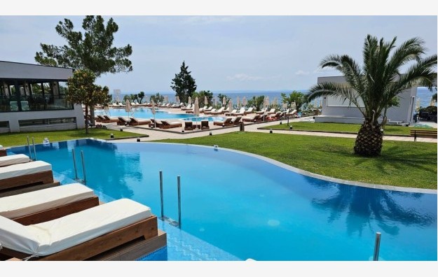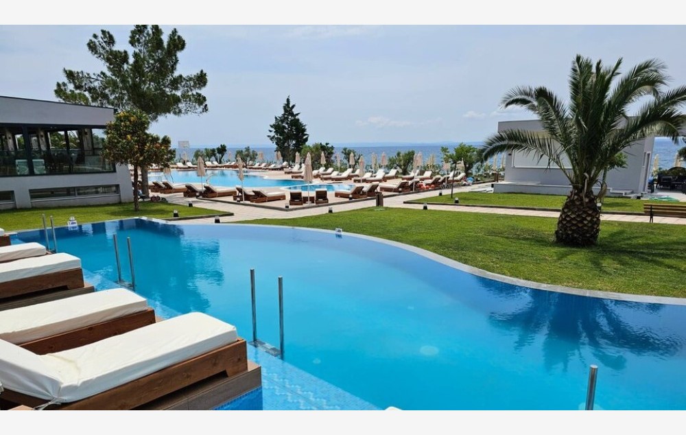 SADRŽAJ: Recepcija 0-24h, wifi internet, room service, bar, restoran, otvoreni bazen, ležaljke i suncobrani pored bazena, bar pored bazena, bar na plaži, parking.