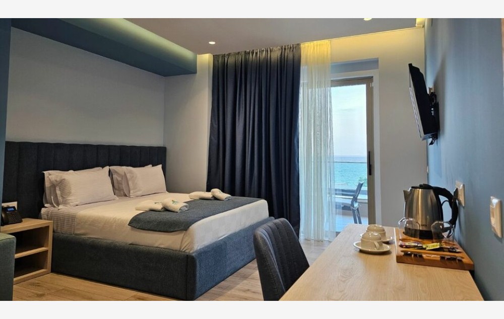 Superior Room Sea View-25 m2, udobna soba, sa pogledom na more i pravi je ambijent za miran odmor, sa bračnim ili dva odvojena kreveta i sofom ili krevetom za jednu osobu za treću osobu, sopstveno kupatilo I namešten balkon s pogledom na more.