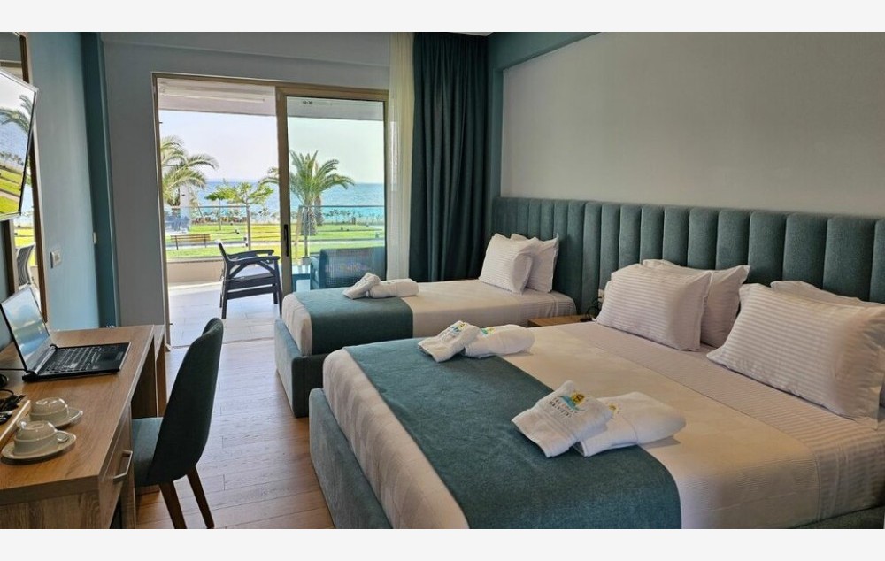 Premium Room Garden View- 20 m2, pod toplim suncem Halkidikija, ove sobe imaju bračni ili dva odvojena kreveta, sopstveno kupatilo i nameštenu terasu s pogledom na baštu.