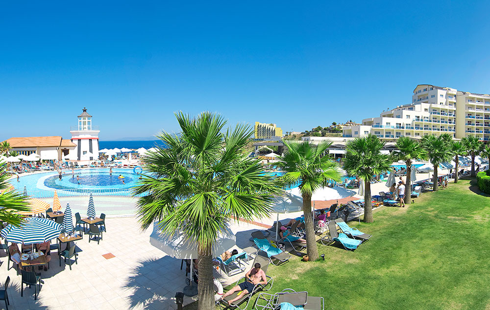 Položaj: hotel je lociran na samoj plaži. Udaljen je 130km od aerodroma Milas u Bodrumu i 5km od centra Kušadasija. Hotel je poslednji put renoviran 2018.godine. Zauzima površinu od oko 38.000 m2.
