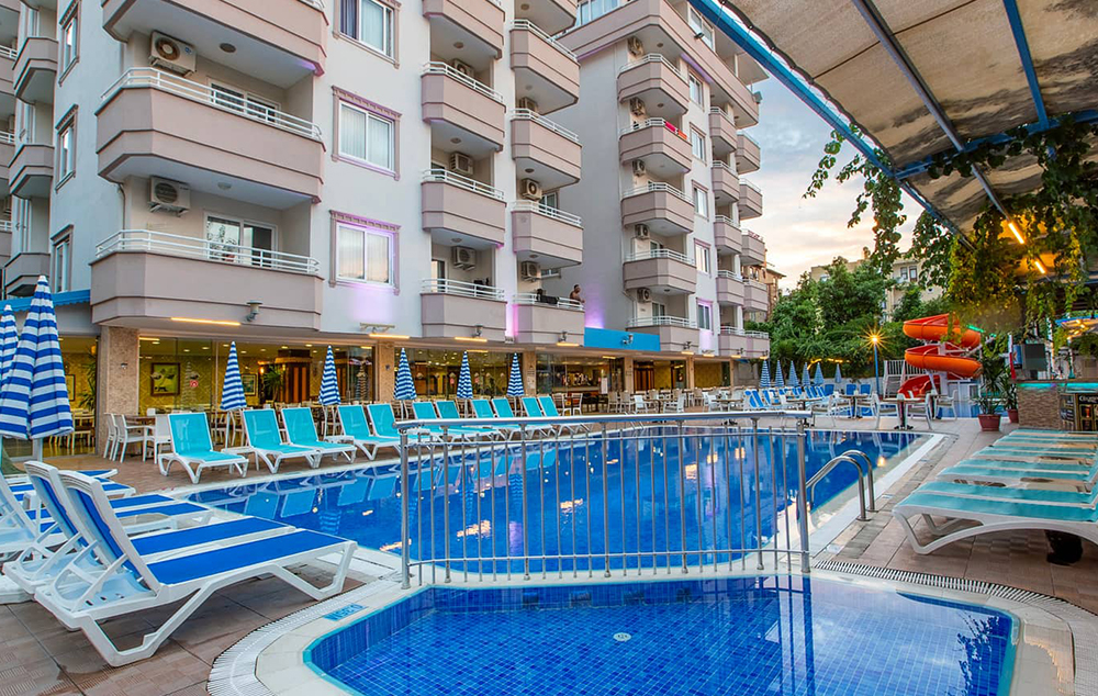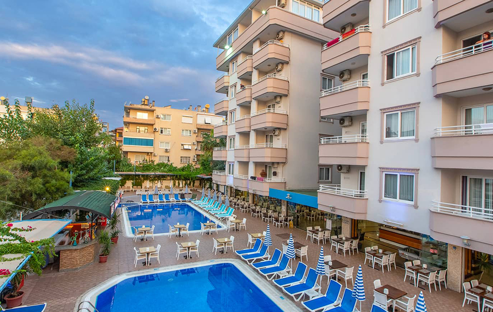 Položaj: Hotel je udaljen 120km od Antalijskog aerodroma i 100m od centra Alanje. Poslednji put renoviran 2019. godine. Preko puta hotela se nalazi aqua park Alanja.