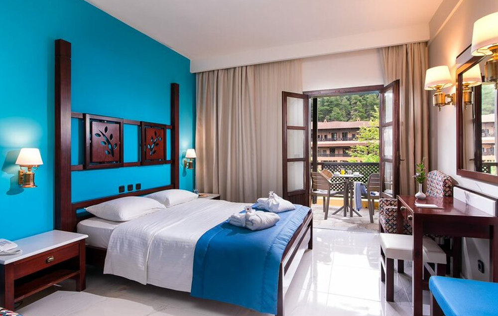 Standard Room-24 m2, sobe otvorenog plana sa bračnim ili dva odvojena kreveta, sopstvenim kupatilom sa tušem i nameštenim balkonom sa pogledom na baštu ili bazen ili bočni pogled na more.