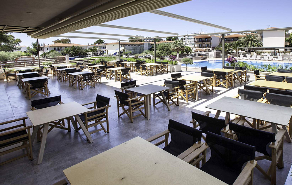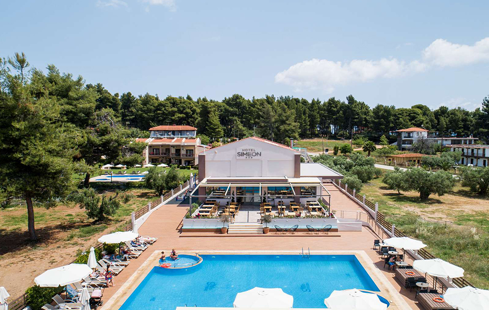 LOKACIJA: Mali porodični hotel, nalazi se u srcu Sitonije, u prelepom okruženju malog mesta Metamorfosi. Svojim gostima nudi apsolutni mir i opuštanje na 70-ak metara od mora. Hotel ima ukupno 90 soba raspoređenih u 6 zgrada.