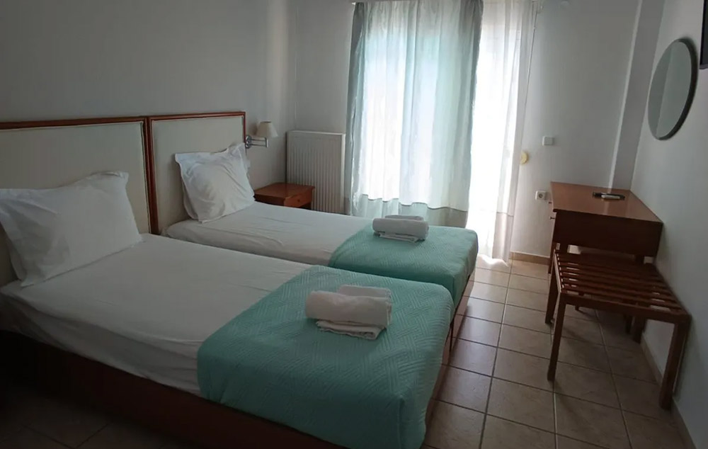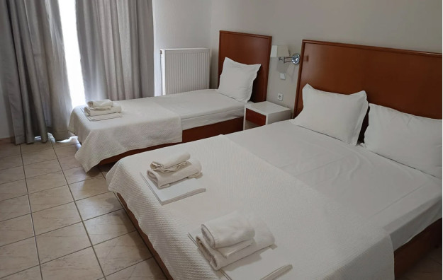 LOKACIJA:Stavros Beach Hotel 3* je smešten u srcu Stavrosa, popularnog letovališta na severu Grčke. Nalazi se na samo 80 metara od plaže.Stavros Beach Hotel se sastoji od dve zgrade, zgrade A (renovirana zdraga) i B, koje se prostiru oko bazena hotela. Renoviran bazen 2022. godine. Zgrada A poseduje superior dvokrevetne-trokrevetne sobe, porodične sobe u prizemlju, junior apartmane sa pogledom na bazen. Standardne sobe hotela su sve u zgradi B.Sve sobe su opremljene TV-om, frižiderom i A/C(klima uključena u cenu), balkon( neke sa pogledom na bazen,a neke sa pogledom na vrt), Wi-fi