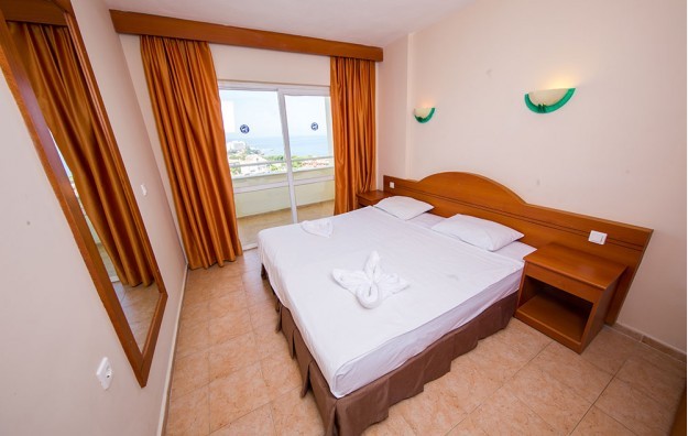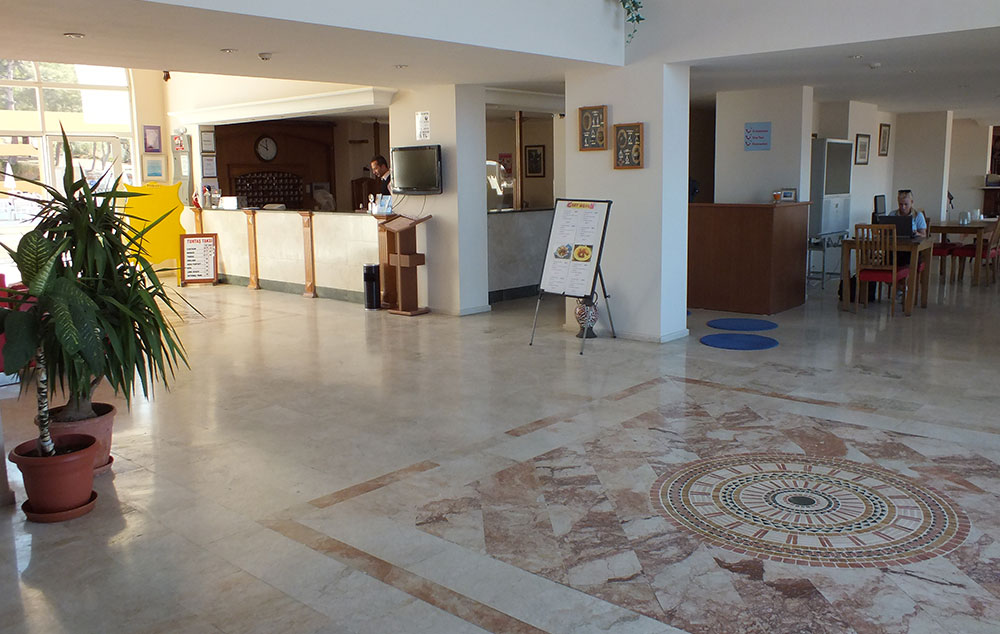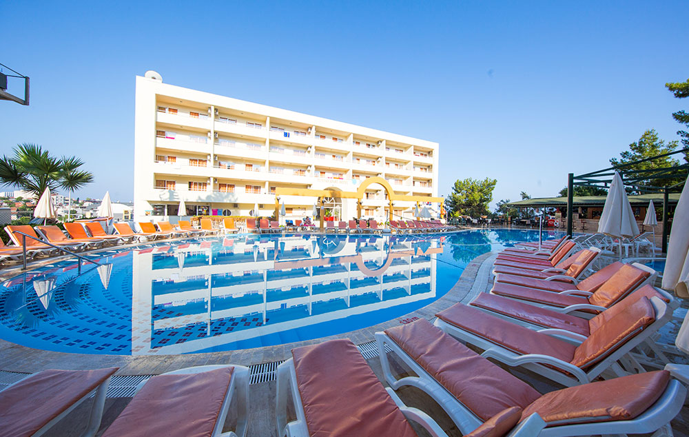 Položaj: nalazi se na uzvišenju sa kojeg se pruža predivan pogled na Ladies beach plažu i ostrvo Samos. Objekat je udaljen od Ladioes beach plaže 250m. Od centra grada je udaljen oko 2,5km. Stanica dolmusa - lokalnih mini buseva je udaljena od objekta svega 100m. U okolini hotela se nalazi dosta barova, restorana, marketa. Hotel se nalazi na 125km od aerodroma u Bodrumu.