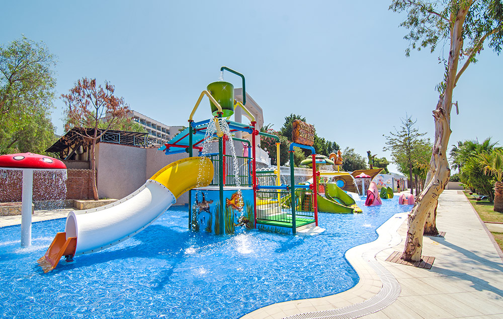 Hotelski sadržaj: recepcija, lobi, 3 restorana, 6 barova, otvoreni bazeni sa odeljkom za decu-ležaljke i suncobrani besplatni za goste hotela, 3 a la carte restorana, prodavnice, mini-klub (starost od 04-12 godina), dečije igralište i dečiji akva-park, tenis, stoni tenis, badminton, odbojka, košarka, pikado, vaterpolo, kanu, pedalino, aerobik, gimnastika, boćanje, animacija (dnevna i večernja), turski hamam, sauna, parno kupatilo, masaže, Spa deo, frizer, perionica, bioskop, prodavnice, vodeni sportovi, šah, disco, wifi.