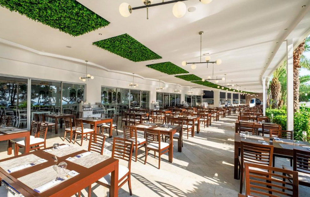 Hotelski sadržaj: Recepcija, glavni restoran, a la carte restoran, lobby bar, bar pored bazena, bar na plaži, bazen sa toboganima i odvojenim delom za decu, poslastičarnicu, mini klub za decu 4-12 god., mini disko, animaciju za decu i odrasle, noćnu animaciju, spa centar (teretana i sauna besplatno, ostalo uz doplatu), wi fi u lobiju je besplatan.
