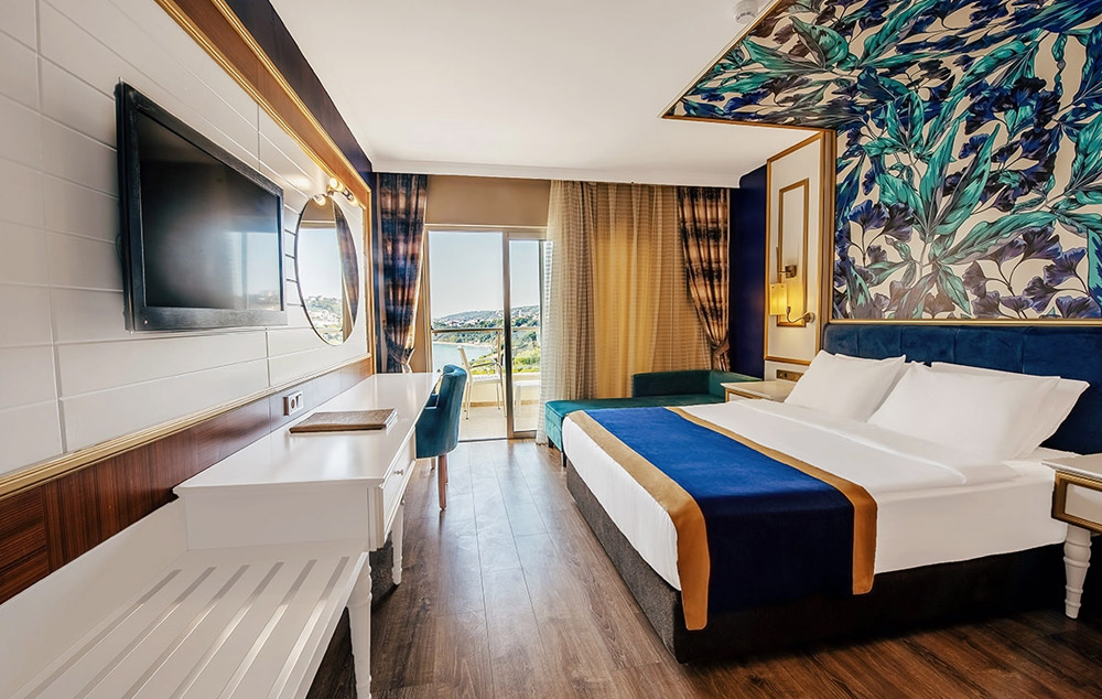 Smeštaj: Hotelski kompleks čine glavna sedmospratna zgrada i pet dvospratnih vila koje imaju ukupno 358 soba. U glavnoj zgradi se nalaze standardne sobe sa pogledom na kopno ili more i porodične sobe, dok se u vilama nalaze vila standardne sobe i vila porodične sobe. Hotel poseduje i sobe za osobe sa posebnim potrebama.