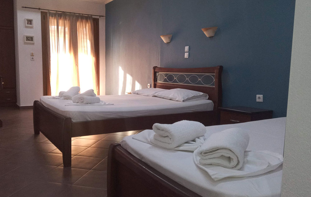 Opis: Vila Eleni je nova vila, a raspolaže trokrevetnim i četvorokrevetnim studijima, kao i četvorokrevetnim apartmanima, koji se nalaze na prvom spratu. Svi studiji/apartmani imaju opremljen kuhinjski deo, kupatilo/wc, terasu, TV, WiFi internet i klima uređaj (uz doplatu na licu mesta od 6€ dnevno).
