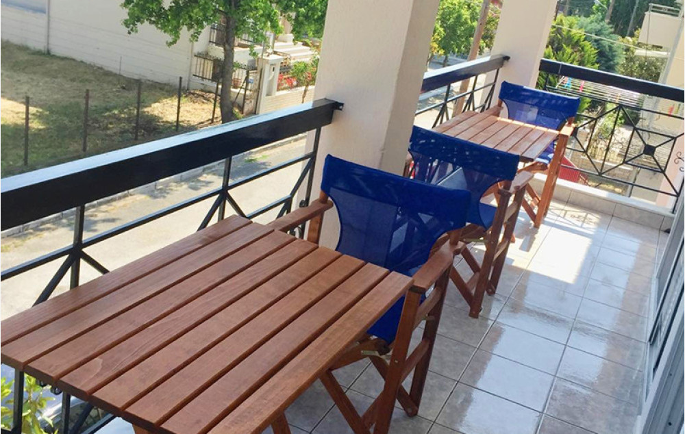 Opis: Poseduje komforna dvokrevetna, trokrevetna i četvorokrevetna studija, smeštena u prizemlju i na prvom spratu. Svaka od smeštajnih jedinica ima opremljen kuhinjski deo, kupatilo/wc, terasu, TV, WiFi internet i klima uređaj (uključena u cenu aranžmana). Vila ima recepciju, a ispred vile je lepo uređen travnjak sa baštenskim garniturama za sedenje, kao i roštilj, koji je gostima na raspolaganju.