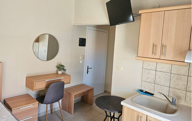 Opis: U našoj ponudi su studiji i apartmani, namenjeni za smeštaj od 2 do 4 osobe. Svaki studio/apartman ima čajnu kuhinju, kupatilo/wc, fen, terasu sa garniturom za sedenje, TV, WiFi internet i klima uređaj (uključen u cenu aranžmana). Vila se nalazi nedaleko od glavnog trga i u centru svih dešavanja u letovalištu. U blizini vile je veliki broj taverni, kafića, prodavnica, picerija. Vila je preporuka je za sve kategorije turista.
