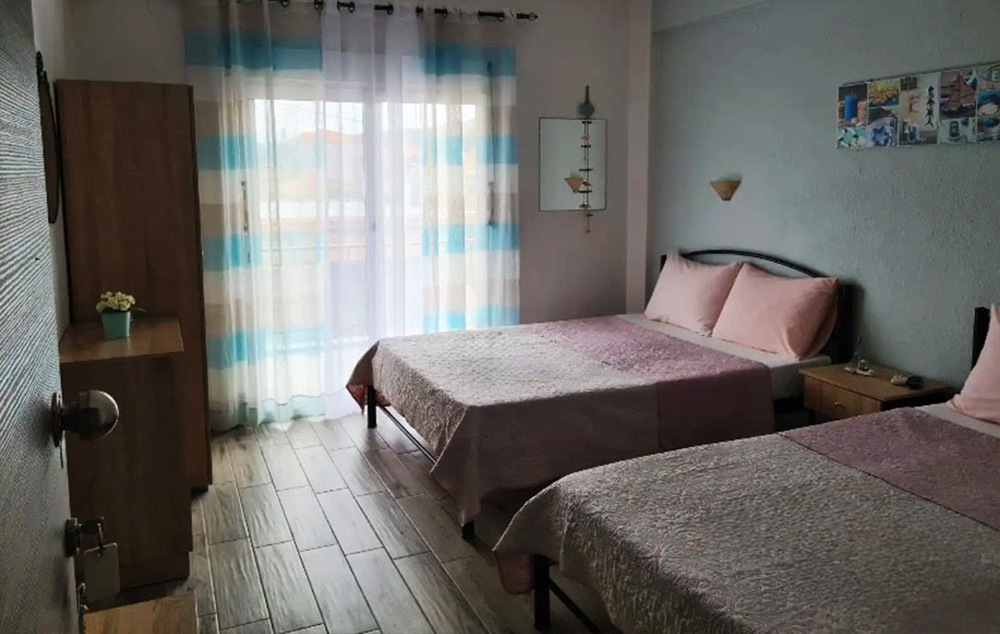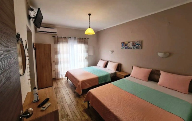 Opis: Nalazi se na glavnom putu kroz Nea Vrasnu, a preko puta velikih super marketa. Poseduje dvokrevetne, trokrevetne, četvorokrevetne i petokrevetne studije, kao i četvorokrevetne i petokrevetne apartmane koji se nalaze u prizemlju, na prvom spratu ili drugom spratu. Smeštajne jedinice u prizemlju su renovirane. Svaka od njih ima opremljen kuhinjski deo, kupatilo/wc, terasu, TV, WiFi internet i klima uređaj (uz doplatu na licu mesta od 5€ dnevno).