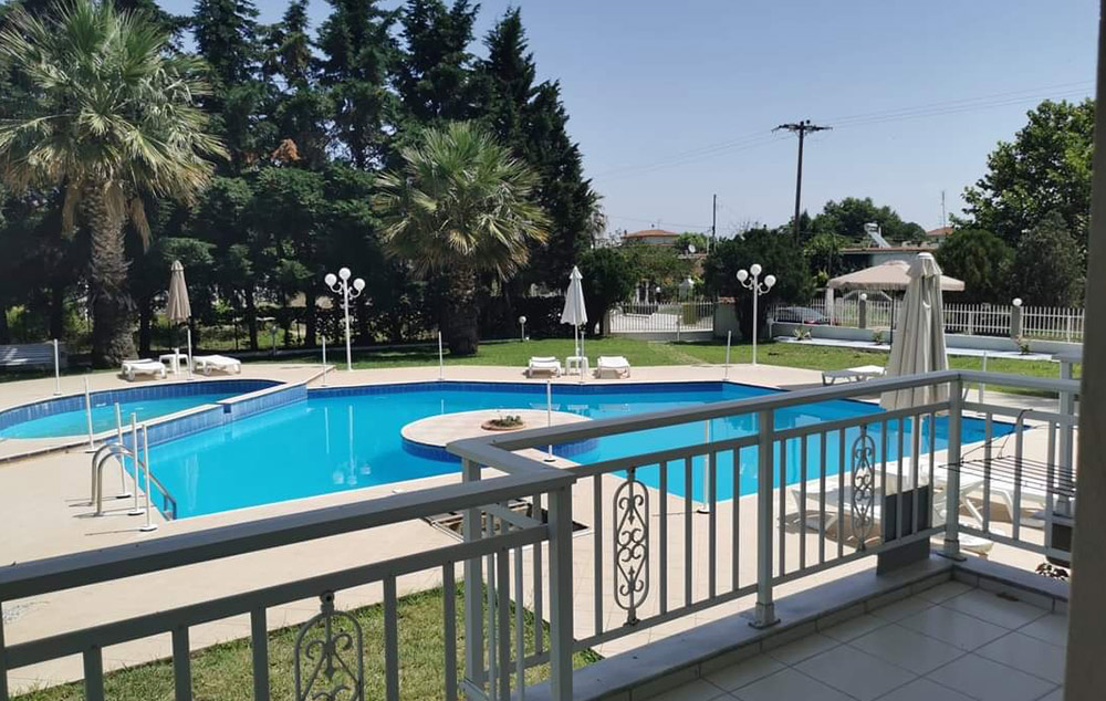Opis: Smeštajne jedinice vile Filipos se nalaze na visokom prizemlju i na prvom spratu. Vila poseduje studie, koji imaju jedan bračni ležaj po grčkom standardu i jedan ili dva singl ležaja, a duplex apartmani dva bračna ležaja po grčkom standardu i jedan ili dva singl ležaja. U nekim studijima postoje fotelje na razvlačenje na kojima može boraviti dete do 5 godina, bez doplate. Svi imaju kuhinjski deo, kupatilo/wc, balkon sa garniturom za sedenje sa pogledom na bazen ili vrt, TV, WiFi internet i klima uređaj (uz doplatu na licu mesta 5€ dnevno).