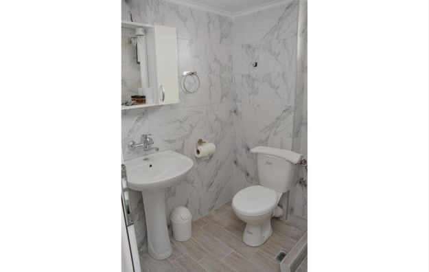 Opis: Poseduje komforna dvokrevetna, trokrevetna i četvorokrevetna studija, smeštena u prizemlju i na prvom spratu. Svaka od smeštajnih jedinica ima opremljen kuhinjski deo, kupatilo/wc, terasu, TV, WiFi internet i klima uređaj (uključena u cenu aranžmana). Vila ima recepciju, a ispred vile je lepo uređen travnjak sa baštenskim garniturama za sedenje, kao i roštilj, koji je gostima na raspolaganju.