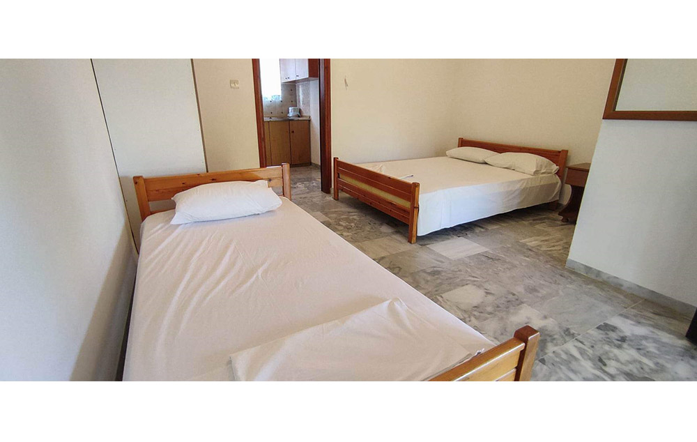 Opis: Vila poseduje studija namenjena za boravak od dve do četiri osobe, koja se nalaze u prizemlju i na prvom spratu. Sva studija imaju klimu (uz doplatu na licu mesta od 7 €). Većina studija ima bočni pogled na more. Svaka od smeštajnih jedinica ima opremljen kuhinjski deo, kupatilo/wc, terasu, TV, WiFi internet.