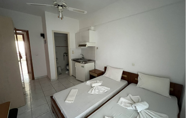 Lokacija: Jedna od bolje lociranih vila novijeg datuma, nalazi se na oko 30 metara od plaže, izdvojena iz centra letovališta, na oko 550 metara od hotela Galini. Opis:Pored lepog malog dvorišta sa tremom, stolom i klupama za sedenje, zidanog roštilja, nedavno renovinarana vila Rania se sastoji od studija na visokom prizemlju sa pogledom na mirnu ulicu. Opremljeni su plafonskim ventilatorom, klima uredjajem (uračunat u cenu), bežičnim internetom i smarth TV - om. Dvokrevetni + 1 studiji sadrže opremljenu kuhinju sa stolom za ručavanje, velikim frižiderom sa zamrzivačem i malim šporetom, deo za spavanje sa francuskim ležajem i jednim na otvaranje, kupatilo i lepu terasu sa garniturom za sedenje. Veličina apartmana je cca 27 kvm + terasa. U cenu su uključene dve ležaljke ili ligeštula za plažu i suncobran koji se nalaze na plaži ispred vile. Vila Rania je A kategorije, ima peškire i ima mogućnost sopstvenog parkinga.
