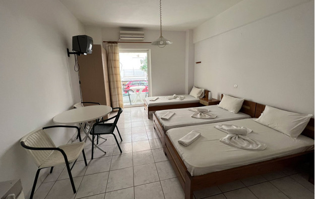 Opis:Na plaži se nalaze po dve ležaljke i suncobran za svaki studio koji su uračunati u cenu. Vila Spitaki se sastoji od studija na prizemlju sa pogledom na dvorište u hladovini loze, u kojem se nalazi veliki zajednički roštilj sa stolovima i stolicama. Studiji su opremljeni klima uredjajem (uračunat u cenu), bežičnim internetom i TV - om. Dvokrevetni, trokrevetni i trokrevetni + 1 studiji sadrže opremljeni kuhinjski deo, francuski ili francuski i standardni ležaj, kao i fotelju na otvaranje, kupatilo i lepu veliku terasu/dvorište sa garniturom za sedenje. Veličina studija je cca 22 - 24 kvm + terasa. Četvorokrevetni studio ima dodatni standardni ležaj i lepu veliku neogradjenu terasu sa garniturom za sedenje. Veličina apartmana je cca 26 kvm + terasa. Vila Spitaki je B+ kategorije, ima peškire i ima mogućnost sopstvenog parkinga. Preporučujemo putnicima koji putuju sopstvenim automobilom.