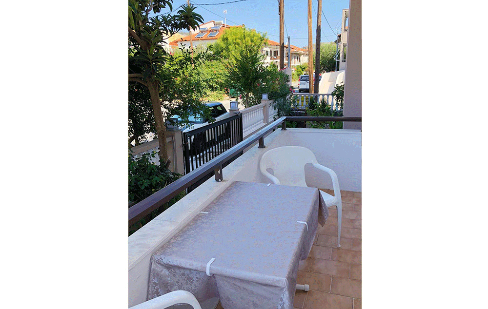 Opis: Sve smeštajne jedinice iz naše ponude se nalaze na prvom spratu. Studiji su lepo i moderno opremljeni i mogu da ugoste 3-4 osobe max. Svaka smeštajna jedinica poseduje opremljen kuhinjski deo, kupatilo, terasu, WIFI, TV i klima uređaj (uz doplatu na licu mesta od 6€ dnevno).