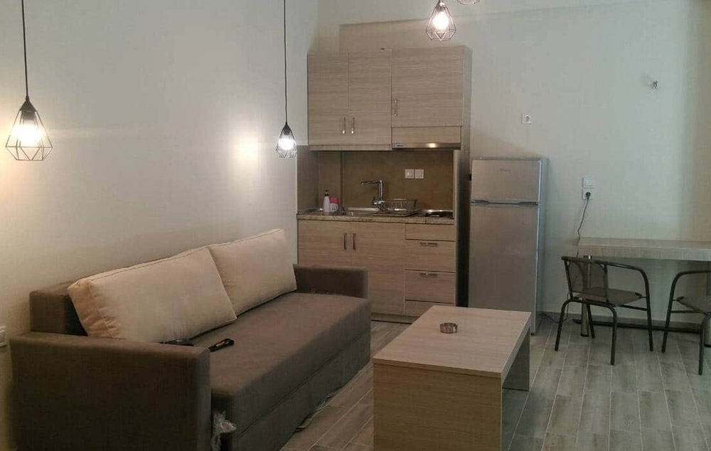 Opis: Sve smeštajne jedinice iz naše ponude se nalaze na prvom spratu. Studiji su lepo i moderno opremljeni i mogu da ugoste 3-4 osobe max. Svaka smeštajna jedinica poseduje opremljen kuhinjski deo, kupatilo, terasu, WIFI, TV i klima uređaj (uz doplatu na licu mesta od 6€ dnevno).