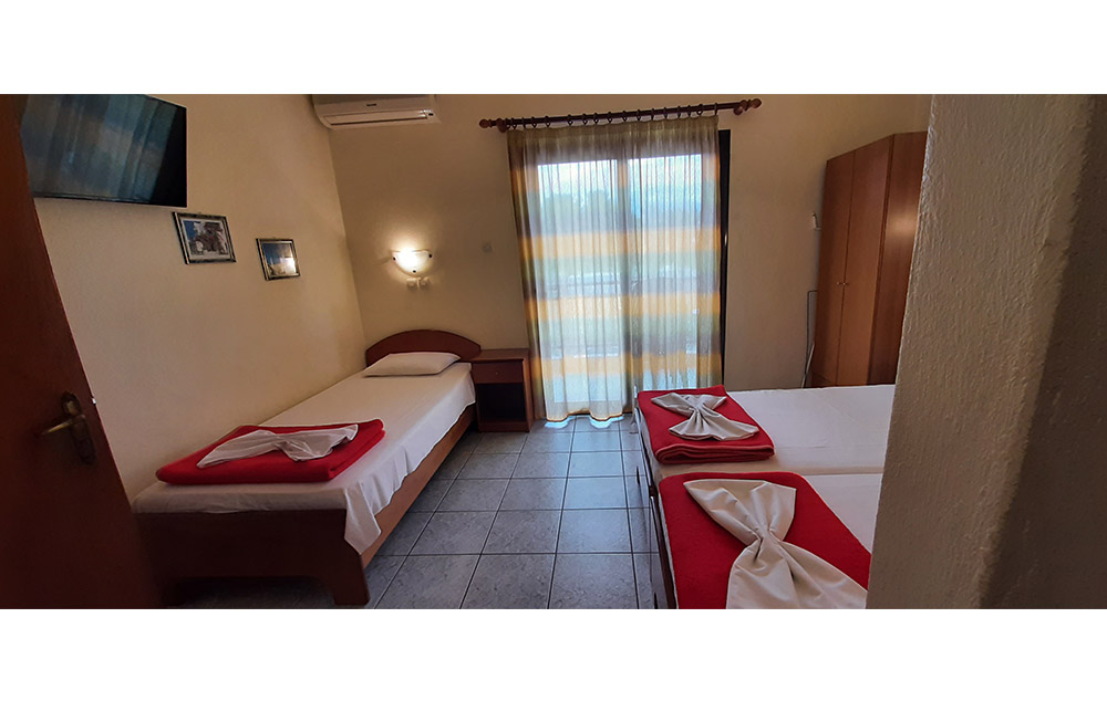 Lokacija: Vila Antigoni se nalazi u centru letovališta, na svega oko 100 metara od prelepe peščane plaže. Dvokrevetni i trokrevetni studiji se nalazi u prizemlju sa dvorišne strane, okruženi zelenilom