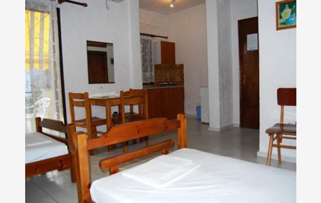 Opis: Vila ima malu recepciju i svi studiji su opremljeni klima uredjajem (uz doplatu na licu mesta (opcija), 5 eur dnevno po studiju/apartmanu), SAT TV-om i wi - fi Inetrnetom.Dvokrevetni studiji (1/2 STD) u vili Tasos - Despina nalaze se na drugom spratu, a dvokrevetni i trokrevetni apartmani (1/2 APP, 1/3 APP) na prvom, drugom i trećem spratu. Sadrže opremljenu kuhinju, deo za spavanje sa dva, odnosno tri ležaja ili manji francuski i standardni, kupatilo i nešto užu, ali dugačku terasu sa garniturom za sedenje. Nekoliko apartmana ima izdvojen treći ležaj u kuhinjkom delu. Veličina studija i apartmana je cca 18 – 20 kvm + terasa.Vila Tasos - Despina je B kategorije, ima male peškire. Parkiranje je moguće na glavnoj ulici.