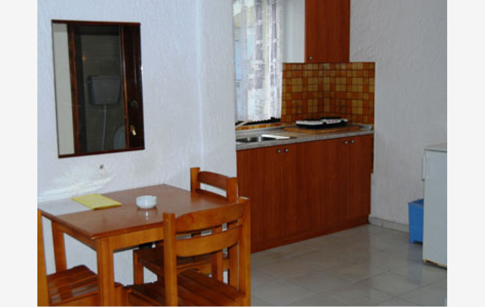 Manji dvokrevetni + 1 studiji (STD 1/2, STD 1/2+1) se nalaze u malo izdignutom prizemlju i na prvom spratu. Lepe i velike terase (sa garniturom za sedenje) gledaju ka vrtu. Studiji su manji, ali funkcionalni i u njima se pored standardnog ležaja, nalazi i prošireni ležaj (francuski ležaj po grčkim standardima-120 cm) na kojem može spavati jedan od roditelja sa detetom. Pored čajne kuhinje sa odgovarajućim posudjem i malim frižiderom (40 l sa komoricom za led) studio je opremljen TV-om, klima uredjajem (uz doplatu na licu mesta (opcija), 5 eur dnevno po studiju), wi – fi Iinternetom, ima malo kupatilo i lepu terasu sa garniturom za sedenje. Ležaljke i suncobrani oko bazena se ne naplaćuju. Studiji su ograničeni na maksimum dve odrasle osobe i dete dodvanaest godina (koje deli prošireni ležaj sa roditeljem). Veličina studija je cca 16 kvm + terasa.