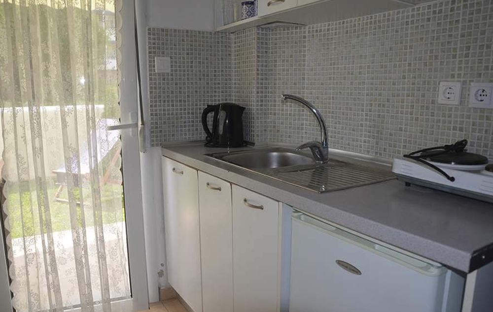Opis: Izvrsna lokacija na kojoj se nalazi, pruža mogućnost mirnog odmora. Vila je deo kompleksa, a raspolaže dvokrevetnim, trokrevetnim i četvorokrevetnim studijima, kao i apartmanima i mezonetama, koje su namenjene za smeštaj od četiri do šest osoba. Smeštajne jedinice se nalaze u prizemlju ili na prvom spratu, sve su renovirane, a većina ih ima pogled na more. Sve smeštajne jedinice  poseduju  opremljen kuhinjski deo, kupatilo/wc, terasu sa garniturom za sedenje, TV, WiFi i klima uređaj  (uz doplatu na licu mesta od 7€ dnevno). Nedaleko od vile nalaze se market, pekara, suvenirnica, veliki broj restorana, kafića i butika. U prvoj zgradi se nalazi i prelep kafe-restoran (beach bar), koji vam pruža mogućnost dodatnog odmora uz veliki izbor pića uz pogled na more. Parking za goste koji dolaze automobilom je moguć u neposrednoj blizini na javnom parkingu.