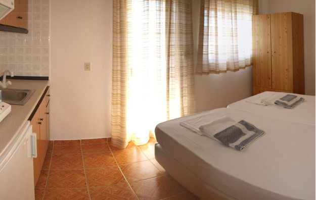 Opis: Poseduje dvokrevetna studija koja su smeštena u prizemlju. Svaki od njih ima opremljen kuhinjski deo, kupatilo/wc, terasu, TV, WiFi internet i klima uređaj (uključen u cenu aranžmana). U neposrednoj blizini se nalaze supermarketi, pekare, restorani, kafići i ostali sadržaji.