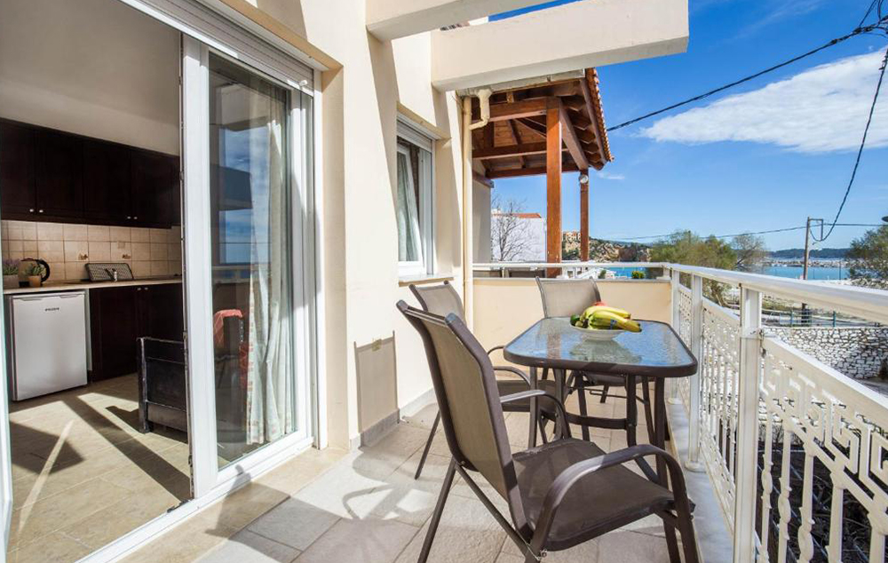Opis: Vila poseduje dvokrevetna i dvokrevetna studija sa pomoćnim ležajem, smeštena u prizemlju i na prvom spratu. Prostor ispred studija u prizemlju je u funkciji zajedničke terase, a svaki ima svoju garnituru za sedenje. Studija na spratu imaju zajedničke-prolazne terase. Svaki studio poseduje mini čajnu kuhinju, kupatilo/wc, peškire, WiFi internet, TV, klima uređaj (uz doplatu na licu mesta od 6e dnevno). Na oko 200 metara se nalaze prodavnice, pekara, apoteka