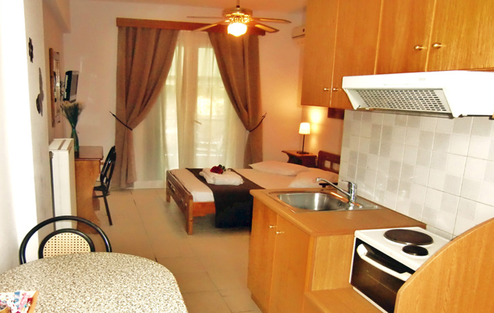 Jedna od bolje lociranih vila novijeg datuma, nalazi se na oko 30 metara od plaže, izdvojena iz centra letovališta, na oko 550 metara od hotela Galini. Pored lepog malog dvorišta sa tremom, stolom i klupama za sedenje, zidanog roštilja, nedavno renovinarana vila Rania se sastoji od studija na visokom prizemlju sa pogledom na mirnu ulicu. Opremljeni su plafonskim ventilatorom, klima uredjajem (uračunat u cenu), bežičnim internetom i smarth TV - om. Dvokrevetni + 1 studiji sadrže opremljenu kuhinju sa stolom za ručavanje, velikim frižiderom sa zamrzivačem i malim šporetom, deo za spavanje sa francuskim ležajem i jednim na otvaranje, kupatilo i lepu terasu sa garniturom za sedenje. Veličina apartmana je cca 27 kvm + terasa. U cenu su uključene dve ležaljke ili ligeštula za plažu i suncobran koji se nalaze na plaži ispred vile. Vila Rania je A kategorije, ima peškire i ima mogućnost sopstvenog parkinga.