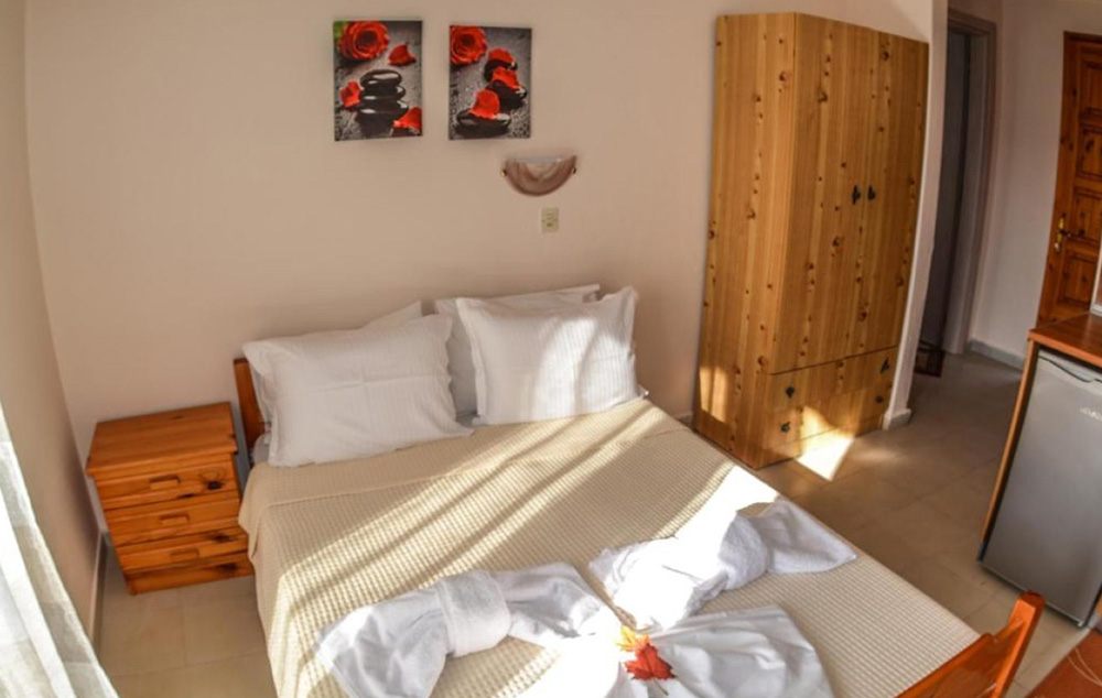 Veličina studija je cca 16 do 20 kvm + terasa. Vila Eleni je B kategorije, ima peškire i nema mogućnost sopstvenog parkinga.