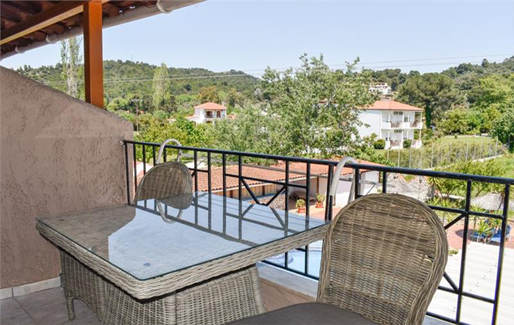 Vila se nalazi u blizini čuvene plaže Trulos, jedne od najlepših na jugozapadnoj strain Skiatosa, od koje je udaljena oko 550 metara. U neposrednoj blizini je prodavnica, nekoliko taverni i barova, benzinska pumpa i autobuska stanica (broj 19) za autobus do grada Skiatosa koji je udaljen oko 8,5 km. Vila Victoria je smeštena u lepom dvorištu sa zelenilom i cvećem, u kojem je lep veliki bazen okružen ležaljkama i suncobranima (uračunati u cenu), sa barom pored. Mezonete su namenjene za smeštaj od dve do četiri osobe. Sadrže kuhinjski deo, deo za spavanje, kupatilo i lepu veliku terasu sa garniturom za sedenje. Sve mezonete su opremljene klima uređajem (uz doplatu na licu mesta od 8 dnevno), TV-om i wifi internetom. Vila Victoria je B kategorije, ima peškire i mogućnost parkinga na ulici. Izvanredna lokacija za obilazak plaža Skiatosa.