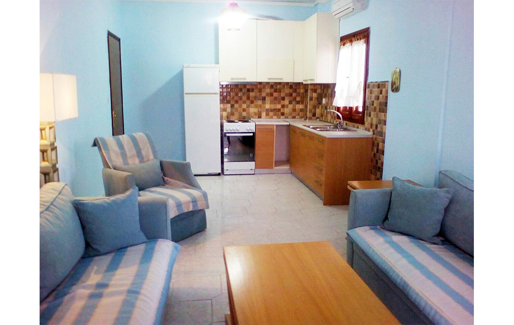 Opis:Trokrevetni i četvorokrevetni apartmani (1/3 APP, 1/4 APP) sastoje se od dve spavaće sobe (od kojih se kroz jednu ulazi u apartman, ima dva standardna ležaja ili francuski i bez vrata ka prolaznoj kuhinji, a druga ima izlaz na terasu i ima francuski ležaj ili dva standardna), male kuhinje, kupatila i velike terase sa garniturom za sedenje sa bočnim pogledom na more, okrenute prema maloj ulici i plaži.Svi apartmani su opremljeni klima uredjajem (uz doplatu na licu mesta (opcija), 8 eur dnevno po apartmanu), wi – fi Internetom i TV - om. Veličina apartmana je cca 35 kvm + terasa.Vila Rigakis Mol je B kategorije, nema peškire i nema mogućnost sopstvenog parkinga.