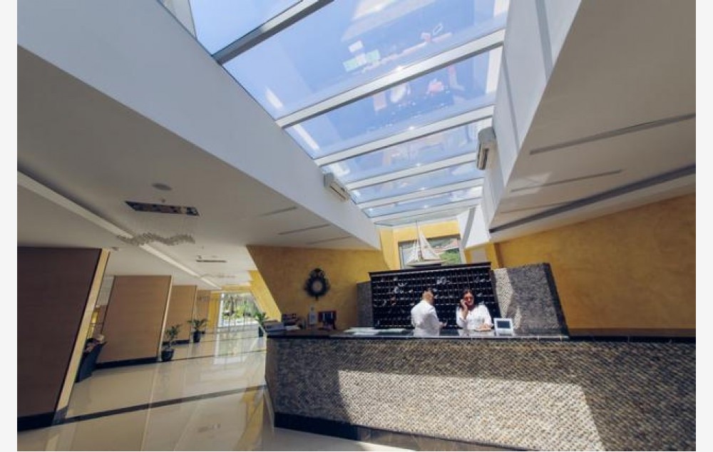 Lokacija: Nalazi se na 80 m od plaže. Hotelsko turistički kompleks se prostire na 11 000 m2 mediteranskog parka sa 140 stabala svetog drveta maslina koje su stare i preko 450 godina.