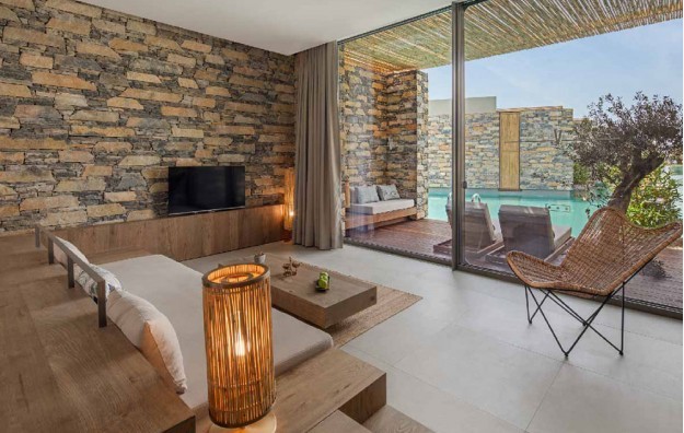 Sve sobe: Olive superior sobe su veličine oko 61m2 i sastoje se od kupatila (Tuš-wc, fen za sušenje kose), telefon, TV, klima, mini bar, ketler, aparat za kafu, terasa. Maksimalno borave 3 odrasle osobe. Olive family sobe veličine oko 75m2, sastoje se iz dve odvojene sobe i opremnjene su isto kao i olive superior sobe. Maksimalno borave 4 odrasle osobe. Olive garden sobe veličine su oko 53m2 i opremnjene su isto kao i olive superior sobe. Maksimalno borave 3 odrasle osobe. Olive garden family veličine su oko 76m2, sastoje se iz dve spavaće sobe, od kojih se u jednoj nalaze kreveti na sprat, opremenjene su isto kao i olive superior sobe. Maksimalno borave 4 odrasle osobe. Executive sobe imaju pogled na baštu ili pogled na more, veličine su oko 61m2 i opremnjene su isto kao i olive superior sobe. Maksimalno borave 3 odrasle osobe. Hotel poseduje i druge sobe većih struktura i različite opremljenosti.